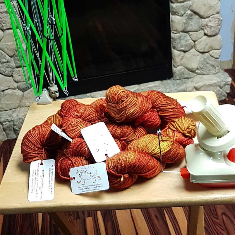 - #acrosstheprairiesKAL (Exploration Station by Stephen West) out of Cog Yarns Hand Dyed MCN Sock in Weekend Thoughts, Tog and Thel sock yarn naturally dyed with Copper and Marigold, and Cloud 9 Fiberworks Cumulus Sock in Unseelie
